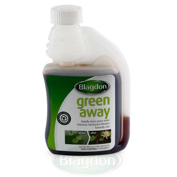 Blagdon Green Away is a hugely popular and effective for rapidly clearing unsightly green water. This flocculant treatment simply clumps the algae particles together making them sink to the bottom of the pond or collect in the filter. Safe for use in all garden ponds. After treatment it is recommended that you use Blagdon Sludge Buster to break down and consume the dead algae. Available in 250ml, 500ml and 1L bottles.