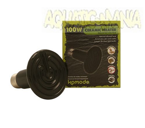 Komodo Ceramic Heat Emitter, 100 Watt Black Heater Natural Sun Like Heat 82201
