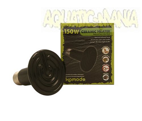 Komodo Ceramic Heat Emitter, 150 Watt Black Heater Natural Sun Like Heat 82202