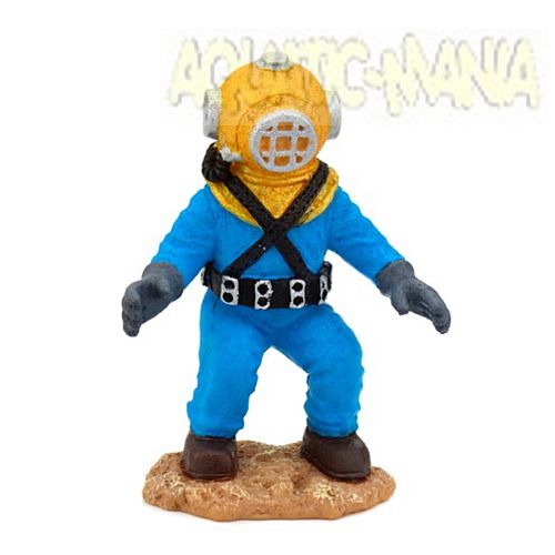 Betta White Diver is a static ornament, depicting an underwater explorer from a bygone age. Approximate dimensions: 7.3cm (w) x 4.6cm (d) x 10.3cm (h).